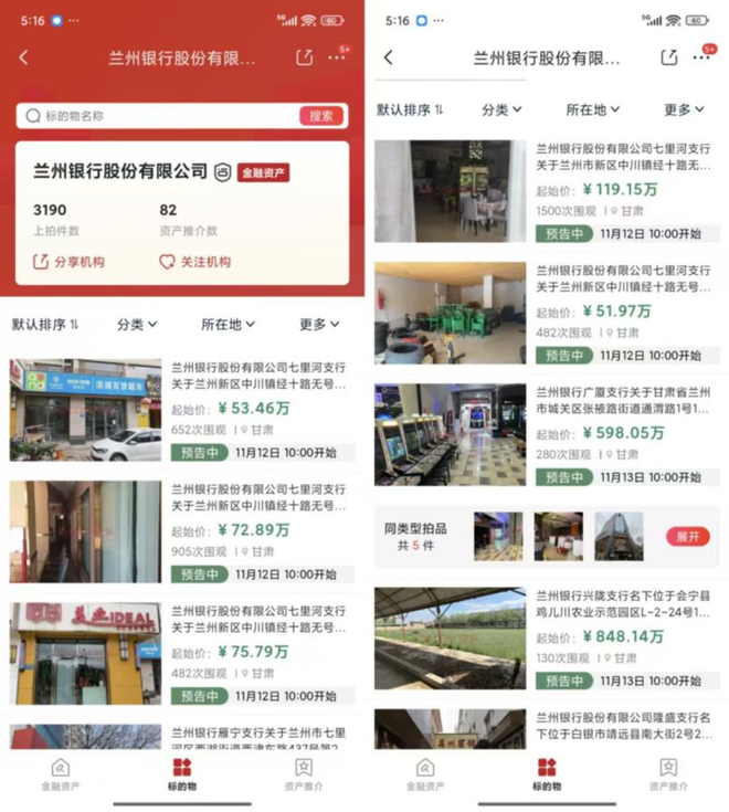 据柒财经观察,11月10日至12日,兰州银行一口气在京东资产交易平台上线30多套房产,价格从十几万到上亿元不等,竞拍标的所在位置横跨甘肃、辽宁、广东、北京等省市。![]()