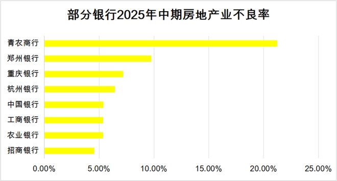 天眼查显示,2025年中期,青农商行的房地产行业不良率由去年末的7.17%狂飙至21.32%,对应不良贷款余额增加约12亿元至20.95亿元。