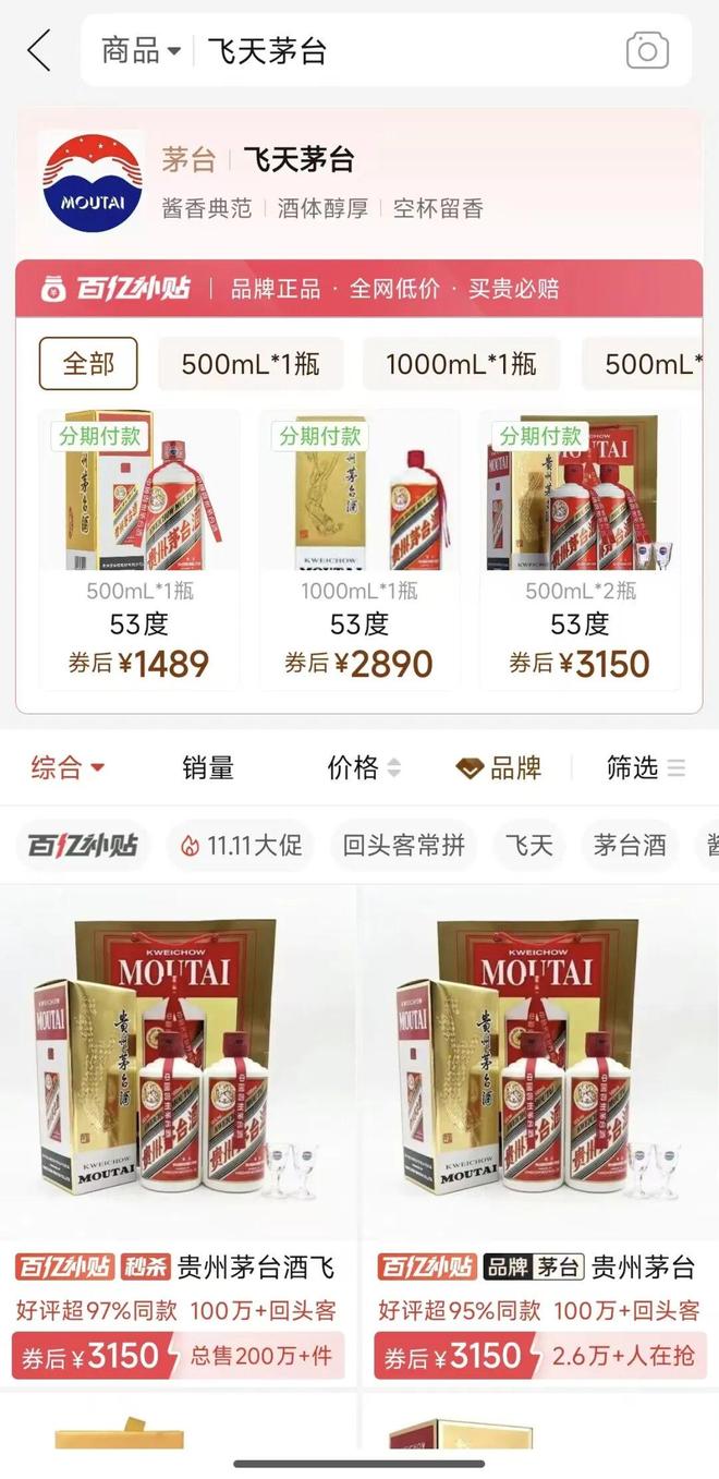 图:电商平台53度飞天茅台售价 资料来源:拼多多、36氪整理