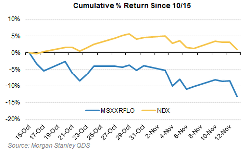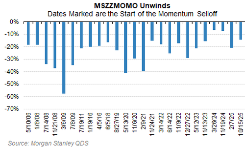 根据摩根士丹利的报告,自10月15日触顶以来,由多空策略构成的动量指数已下跌超过14%。![]()