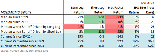 摩根士丹利量化策略团队在报告中指出,当前动量股抛售的深度与历史模式颇为相似。自高点以来,动量股多头组合已下跌19%,与此类抛售潮中-22%的历史平均跌幅基本一致。![]()