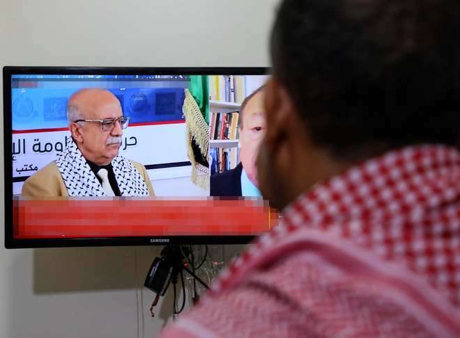 ▲当地时间8月30日,也门萨那的一名男子正在观看电视新闻,新闻中播放了胡塞武装行政机构负责人艾哈迈德·拉哈维的画面,他与其他人于周四在以色列对首都的袭击中丧生 图据视觉中国
