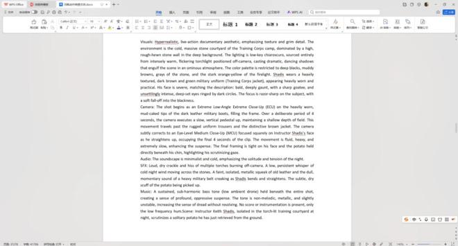 要呈现如此高质量的画面,并保持多个人物前后的一致性并非易事,据说其中一个带有特效的画面在生成时,“三文鱼”写满了一整页文档。而提示词给到大模型,也不是一次就能生成完美可用的视频片段,往往是需要多次生成,然后选取其中一段更符合创作者需要的,而这个过程就像抽盲盒,在AI生成领域也被称为“抽卡”。