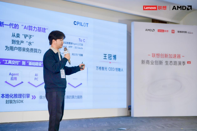 年轻的万格智元创始人兼CEO王冠博带来全新视角:“作为全00后团队,我们以月为单位迭代验证技术路线。联想创新加速器最吸引我们的,是有机会与AIPC业务线直接对接,让我们的Agent技术触达亿万用户。”