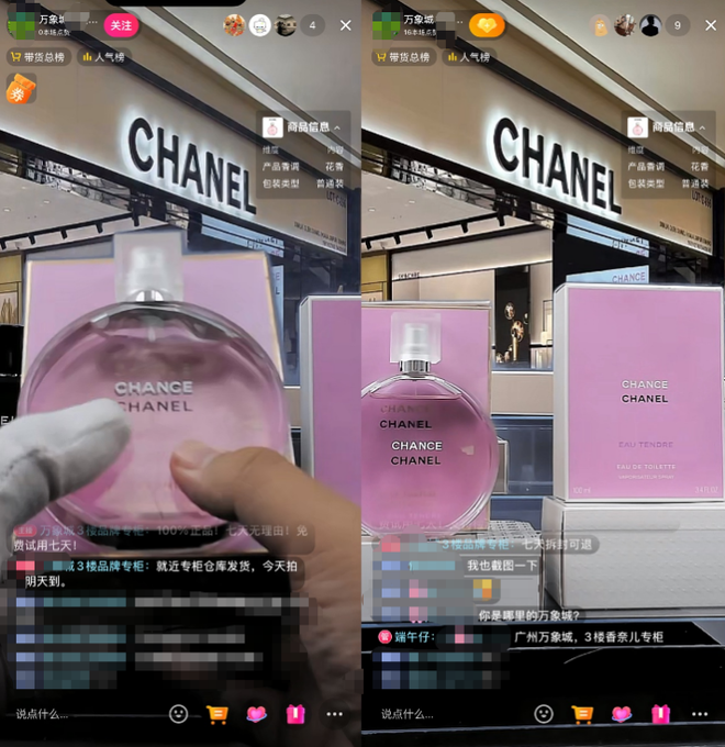 尽管宣称是香奈儿专柜,该直播间同时还售卖圣罗兰和兰蔻的产品。为打消买家顾虑,主播表示"可以7天免费试用,拆封后不满意可以直接退货。"账号页面显示,该直播间系首日开播,店铺已售出超500件商品。值得一提的是,广州万象城仍在施工中,目前尚未开业。