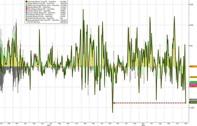 对冲基金在全线买入,需求处于96%分位;高贝塔动量股、最多空头股和AI领军股均从开盘下跌3%反弹至收涨3%。但比特币市场却持续承压,表明其正经历与传统风险资产不同的困境。![]()