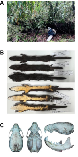 2024年7月~8月,由中国科学院动物研究所、西华师范大学和四川大学组成的联合考察团队在四川马边大风顶国家级自然保护区开展小型兽类生物多样性调查时采集到了3只鼬属物种的标本。这些标本在外观上与黄腹鼬较为接近,但在体重、尾长与尾部形态等性状与黄腹鼬存在显著差异。团队通过整合系统发育基因组学和形态的综合分析,确定其为一新物种,并根据发现地将其命名为马边鼬(Mustela mopbie)。
