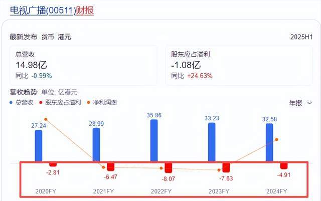 TVB借此狠狠"补"了一下元气。财报来看,TVB 母公司已经连续多年不景气,近5年的亏损额超30亿港币,各种平台的广告收入都在下跌。