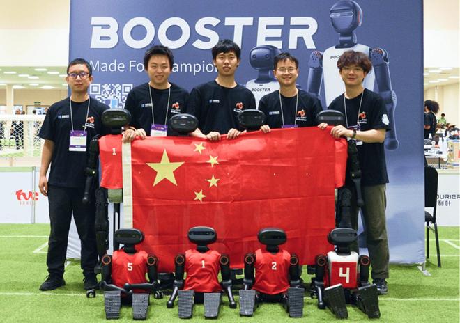 图注:在今年7月举办的2025 RoboCup机器人世界杯上,加速进化Booster T1机器人助力清华大学“火神队”夺得成人组冠军。这是该赛事创办28年来,中国团队首次在技术含金量最高的人形机器人组别斩获金牌。
