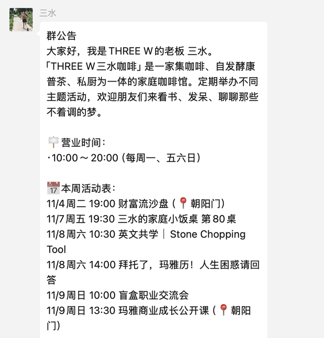 它们通常为5-20人之间的小规模活动,以社交、体验或娱乐为主要目的,其活动内容和其他参加人的属性都有非常强的随机性。