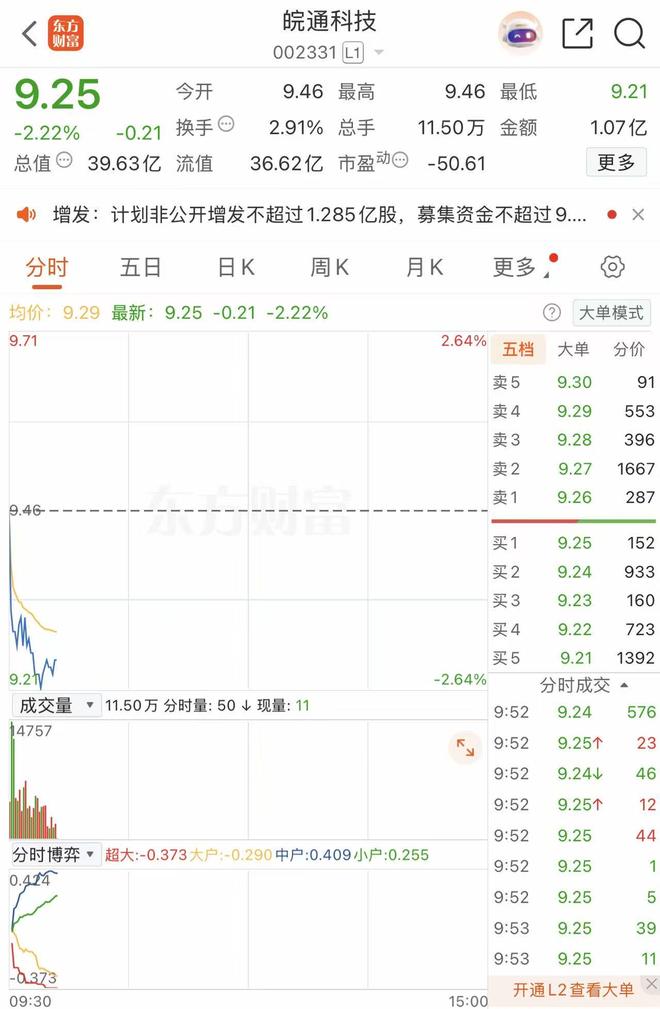 皖通科技实控人全额承担定增募资9.2亿,股价开盘遭遇下挫