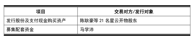 11月18日晚间,天亿马(301178)发布公告称,公司拟通过向实际控制人之一马学沛发行股份及支付现金的方式,购买广东星云开物科技股份有限公司(下称“星云开物”)98.5632%股权并募集配套资金。