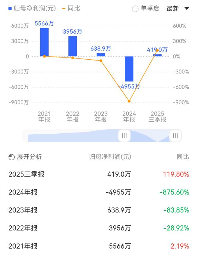 2025年前三季度,公司营业收入为2.28亿元,同比增长46.62%;归母净利润为419.00万元,同比增长119.80%;扣非归母净利润为464.79万元,同比增长123.22%。