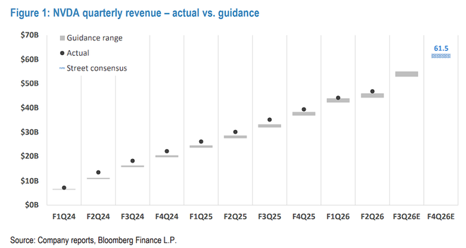 大摩将英伟达10月季营收预期从此前的544亿美元上调至550亿美元,明年1月季营收预期从612亿美元上调至631亿美元。分析师指出,10月季和1月季各实现80亿美元的季度环比增长将创下行业历史最高纪录。