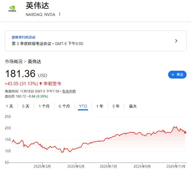 尽管近期遭遇抛售,英伟达股价今年仍上涨35%,是纳斯达克100指数约17%涨幅的两倍多。