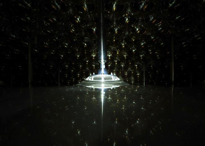 第二帧:2024年12月17日,在江门中微子实验中心探测器有机玻璃球顶部拍摄的光电倍增管。
