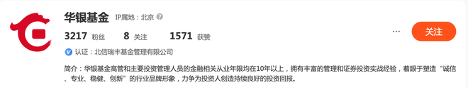 值得一提的是,此前网络平台已出现“华银基金”认证账号,其认证信息明确指向北信瑞丰基金,提前印证了更名传闻。