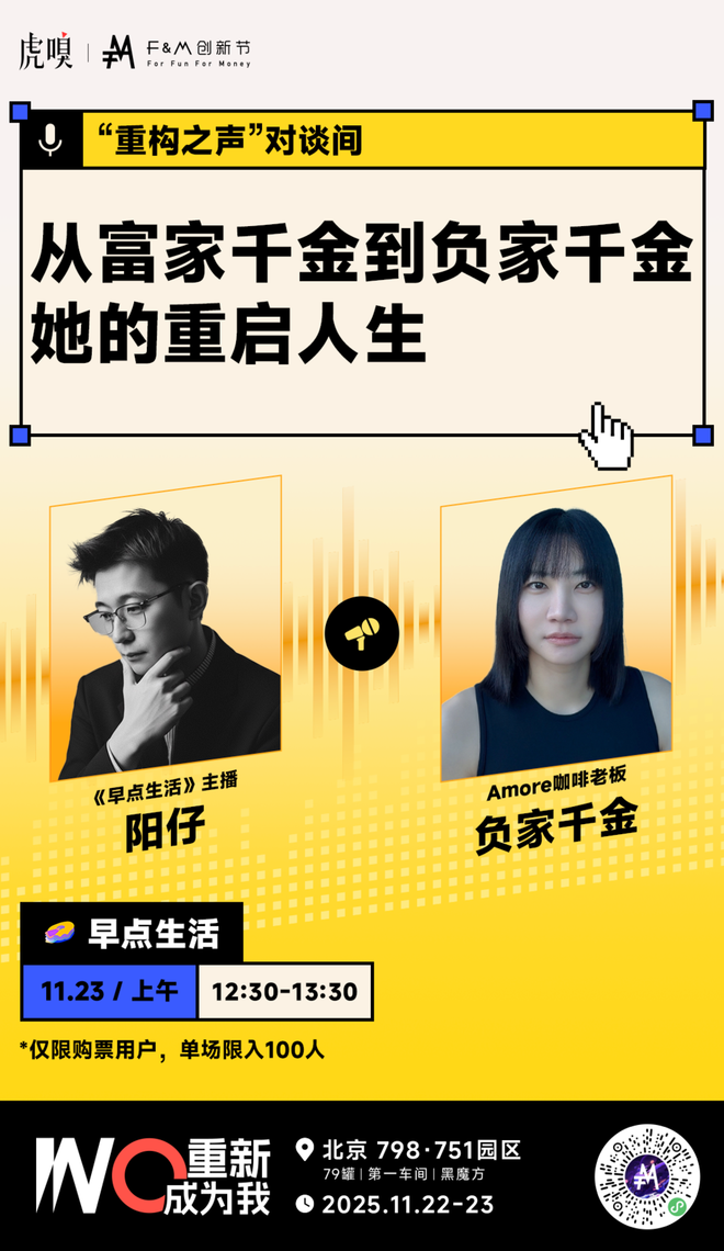 这个戳中当代年轻人痛点的尖锐话题,只是F&M创新节・黑魔方“重构之声”对谈间的一个切片。从“性需求觉醒”到“职场破内卷”,从“科技浪潮中的自我定位”到“低谷时的人生重启”,10+头部播客主理人携手跨界嘉宾,把年轻人藏在心里、聊在私下的困惑与迷茫,全摆到台面上聊透、聊深。