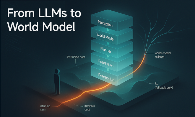 Yann LeCun多次批评大语言模型仅为强大文本数据库,缺乏对现实世界的理解能力。世界模型则致力于通过高维感知数据直接建模,绕开语言转换,在潜空间内推演物理规律,并输出行动指令,实现对环境的内在理解与主动推理。