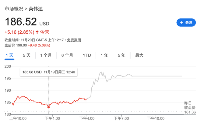 据英伟达发布的最新财报显示,公司第三季度营收达570亿美元,远超华尔街预期的554亿美元。同时,公司第四季度营收指引达650亿美元,同样高于市场预估的624亿美元。受亮眼业绩推动,英伟达股价在美股盘后涨超5%。