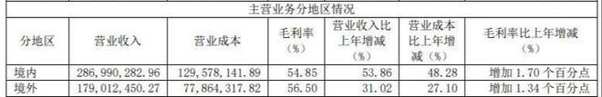 2024年实现营收4.66亿元,同比增长44.21%;归母净利润1.44亿元,同比增长40.62%。分地区来看,2024年,龙迅股份在境内、境外地区的营业收入分别为2.87亿元、1.79亿元,同比增长53.86%、31.02%。