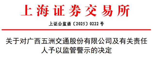 鉴于上述违规事实和情节,同日,上交所也对五洲交通及相关责任人予以监管警示。