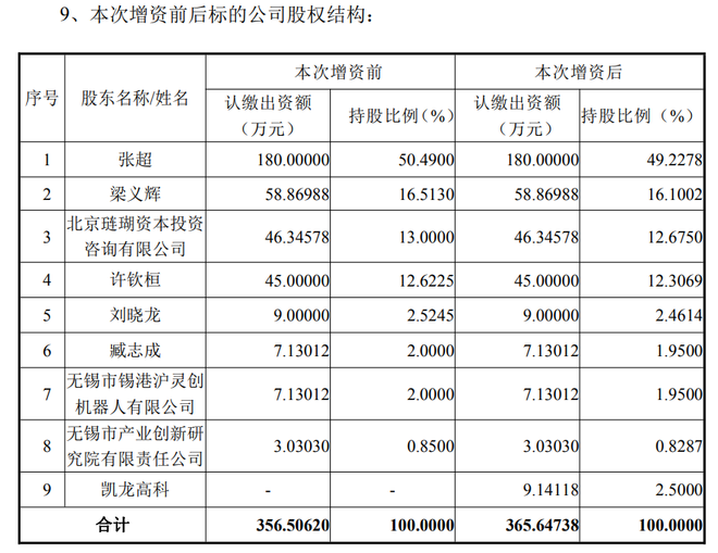 据公告,本次增资后,凯龙高科将成为灵掌机器人第九大股东。