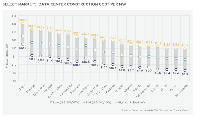平均每MW的建设成本涨到930–1500万美元,开发商被迫向二三线地区迁移。现在玩的是谁能拿到电,谁才能谈算力,谁能把场站交付出来,谁才能谈AI。