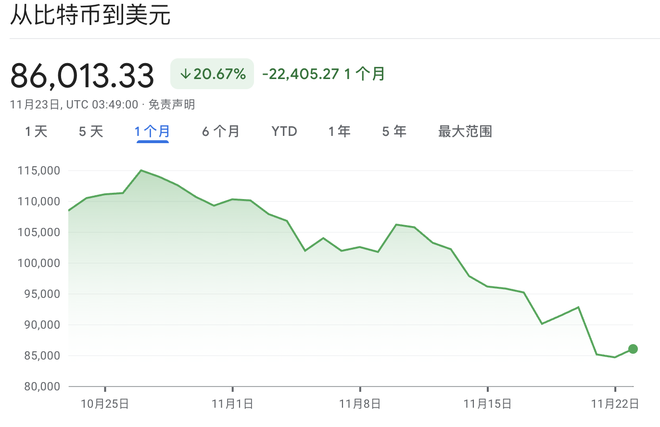 周日,加密货币出现反弹,比特币突破86000美元/枚,日内涨1.63%;以太坊向上触及2800美元/枚,日内涨1.11%。但这一反弹难以掩盖本月的惨烈跌势——比特币正经历自2022年Terra崩盘以来最糟糕的一个月。