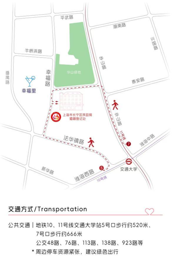 长宁区民政局婚姻登记处新址交通示意图。 图源上海长宁
