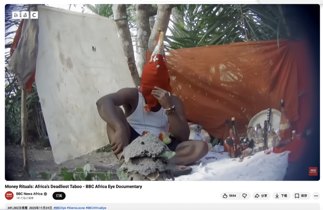 他们《非洲之眼》团队最近公布了一部名为《Money Rituals: Africa’s Deadliest Taboo》的纪录片,对西非国家塞拉利昂(尼古拉斯·凯奇出演的《战争之王》就有关这个国家)的巫医产业进行了卧底调查。