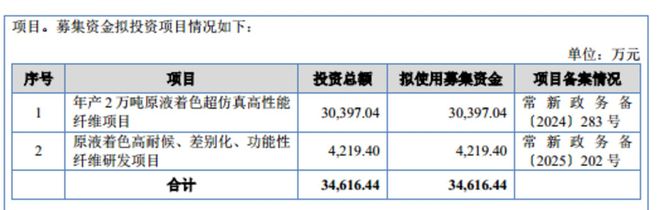 差别化涤纶长丝又主要由POY、DTY、FDY和ATY等构成,而欣战江此次IPO募资的目的便是扩充这些产品的产能。据悉,欣战江此次IPO欲募集34616.44万元,其中30397.04万元用于年产2万吨原液着色超仿真高性能纤维项目,占募资总额的87.81%,项目建成后将新增FDY产能5000吨、DTY产能1.5万吨。