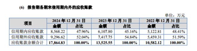这一现象的核心诱因为居高不下的应收账款。招股说明书显示,截至2022年末、2023年末、2024年末,恒道科技的应收账款余额分别为10582.12万元、13525.55万元、17864.83万元,规模持续攀升且始终处于高位。