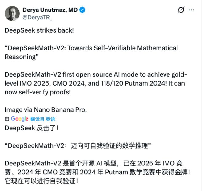 或许人们还沉浸在Gemini 3带来的冲击中,但就在11月27日晚间,DeepSeek在AI开源社区Hugging Face上发布其最新数学模型DeepSeek Math-V2一事,再次引起AI圈内一片沸腾。
