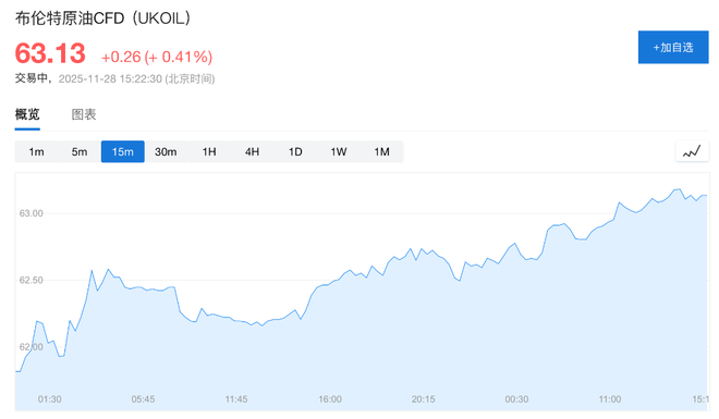 布伦特原油价格持稳于每桶63美元上方,但在11月份仍有望录得连续第四个月下跌,这将是自2023年5月以来的最长连跌周期。欧佩克+(OPEC+)成员国将于本周日举行会议,预计将维持原定计划,即在2026年初暂停增产。