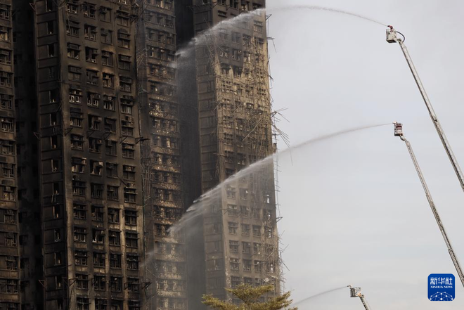 11月27日拍摄的香港大埔宏福苑火灾救援现场。新华社 图