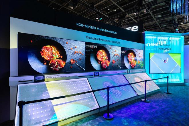 其中,海信携全球首款量产的RGB-Mini LED电视及全场景智能家电亮相。三星则在IFA展上展出了首款采用RGB-Mini LED技术的115英寸RGB Micro LED电视,索尼也紧随其后,携自研的RGB高密度LED显示系统参展。
