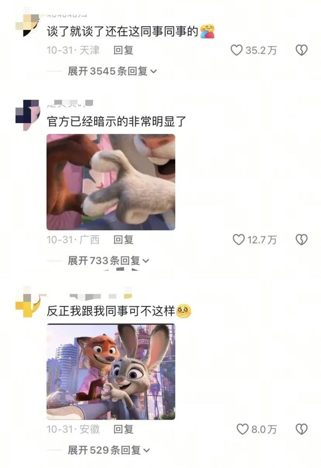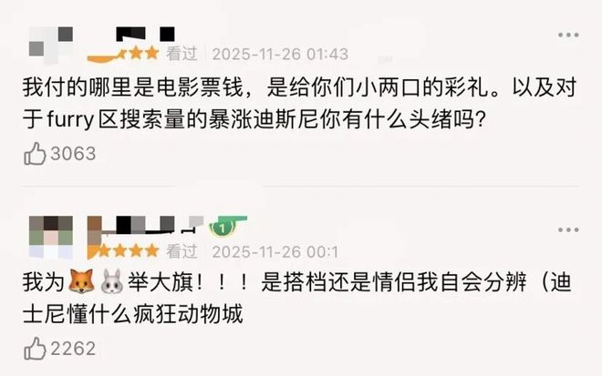 豆瓣上一条高赞评论这样写道:“我付的哪里是电影票钱,是给你们小两口的彩礼。”更有人直言:“是搭档还是情侣我自会分辨(迪士尼懂什么疯狂动物城)。”