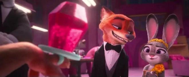 影片在证明两人就是最好的搭档的过程中,从各自身着晚礼服,仿若婚礼现场的高档晚宴,到湿地市场,尼克与朱迪乘上恋爱主题游船,又或是岩石羚羊为两人指路爱情花、老式蜜月旅馆……都能看出迪士尼在CP粉的嗨点上疯狂蹦迪。