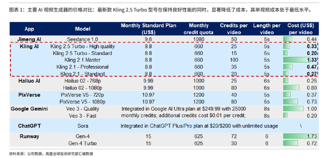 与此同时,成本端的护城河正在拓宽。最新的Kling 2.5 Turbo模型在保持高性能的同时,大幅降低了视频生成成本。