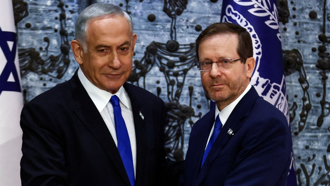 ▲以色列总理内塔尼亚胡和以色列总统赫尔佐格