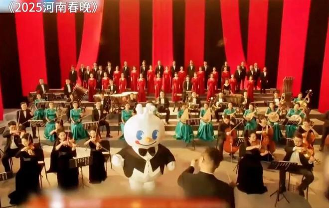 更大的进阶发生在河南春晚的舞台上。当中外交响乐团用各种乐器合奏出洗脑神曲《蜜雪冰城甜蜜蜜》,雪王穿着燕尾服站在C位指挥时,曾经的品牌神曲和符号变成大众视野下的文化认同,完成品牌IP的价值三级跳。