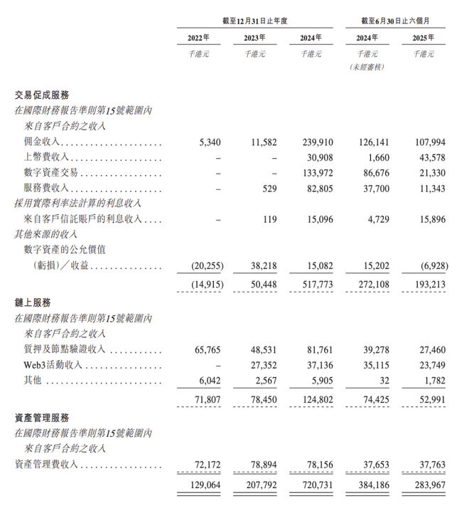 今年上半年,HashKey实现收入2.84亿港元,同比下降26.1%;实现归属于权益股东的应占利润-5.06亿港元,去年同期为-7.77亿港元。HashKey在招股书中表示,收入下降主要由于交易促成服务收入减少。这主要归因于市场低迷,以及若干数字资产价格波动导致2025年上半年确认的数字资产公允价值亏损。