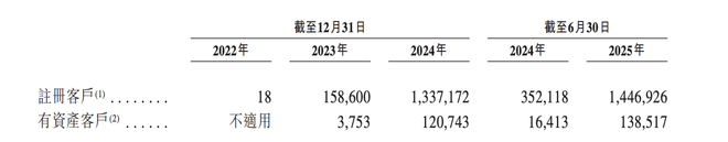 在2022年末时,HashKey的注册客户仅为18名,但这一数字到2024年末已接近133.72万。截至今年6月末,HashKey的注册客户达到144.69万。就有资产客户来看,截至2023年末、2024年末,这一数字分别为0.38万、12.07万。截至6月末,在HashKey有资产的客户数为13.85万,同比增长7.44倍。