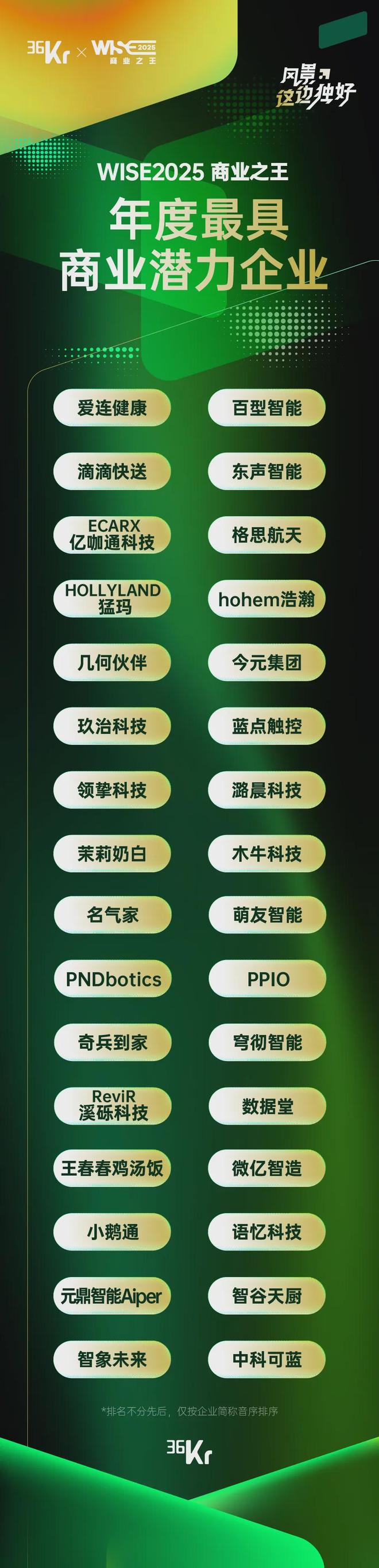 以下为「WISE2025 商业之王 年度最具商业潜力企业」: