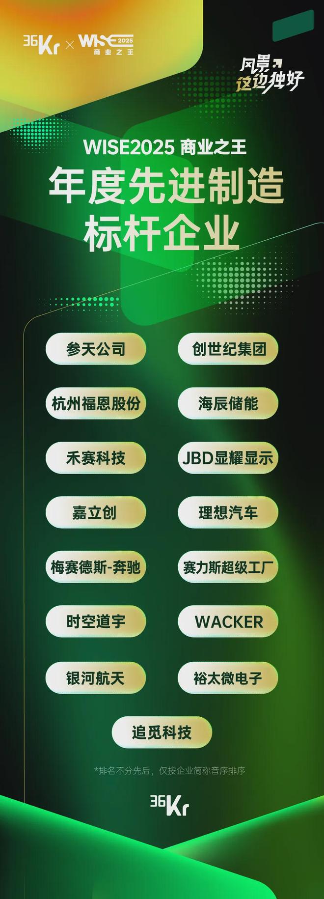 以下为「WISE2025 商业之王 年度先进制造标杆企业」: