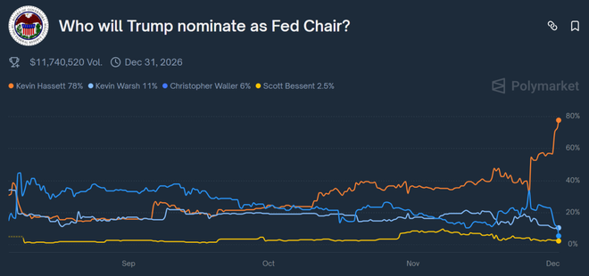 另外随着美国总统特朗普宣布已经决定下一任美联储主席提名人选,现任白宫经济委主任凯文·哈塞特已被公认为头号候补。预测市场Polymarket数据显示,