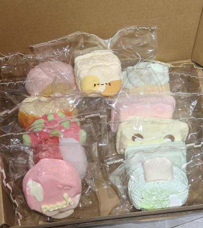 “蝴蝶酥”进一步解释道:“选材环节虽然相对固定,常用的胶水原料、透明胶水都需要提前备货;而最为耗时的塑形阶段,则需要通过手绘、奶油填色等精细手法打造每个造型,这个过程往往需要半天到一天。”她强调,这些看似零散的时间投入叠加起来,使得手工捏捏天然带有“小批量、个性化”的属性,也让规模化生产变得异常困难。