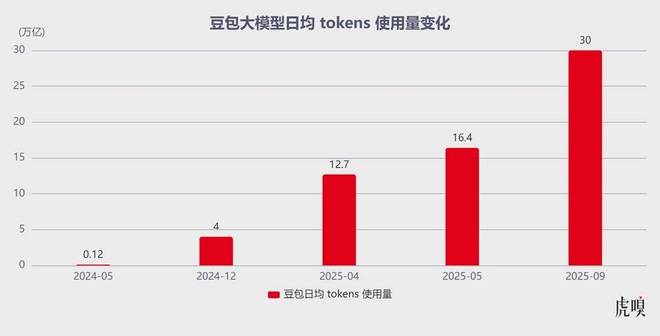 即便阿里云、腾讯云接招迅速,火山引擎仍尝到了“敢为行业先”的甜头 ——虎嗅了解到,截至 2025 年 9 月,豆包大模型日均处理 30 万亿 Tokens,相比 2024 年 5 月首次推出时增长了 25300%。