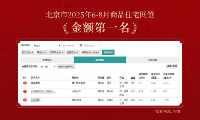 刚刚过去的8月份,建发·海晏以55.76亿的网签金额助其拿下近3个月北京楼市销冠。(数据来源:天朗)